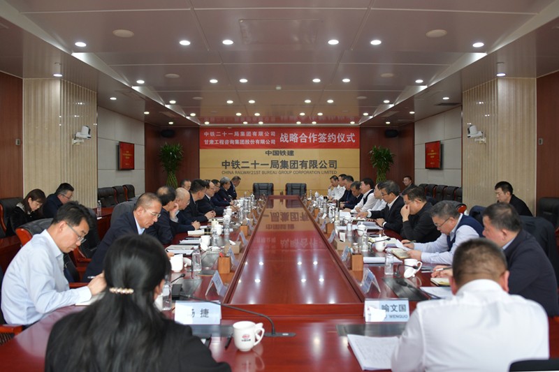 3月11日,甘肅工程咨詢集團(tuán)黨委書記、董事長(zhǎng)張佩峰,總經(jīng)理、董事陳一夫拜訪中鐵二十一局集團(tuán)董事長(zhǎng)、黨委副書記莊紀(jì)棟。雙方圍繞深化基礎(chǔ)設(shè)施建設(shè)和工程咨詢領(lǐng)域合作深入交流,并簽訂戰(zhàn)略合作框架協(xié)議。中鐵二十一局集團(tuán)領(lǐng)導(dǎo)劉一鳴、趙春鋒、馬建軍,甘肅工程咨詢集團(tuán)領(lǐng)導(dǎo)成少平、曹慶參加。