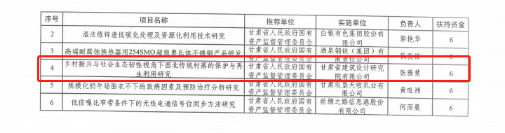 近期,省委組織部印發(fā)了《關(guān)于印發(fā)2023年度省級重點(diǎn)人才項(xiàng)目和隴原青年創(chuàng)新創(chuàng)業(yè)人才(團(tuán)隊(duì))項(xiàng)目入選名單的通知》(甘組通字〔2023〕20號),甘肅工程咨詢集團(tuán)省建筑設(shè)計(jì)院張雅慧申報(bào)的《鄉(xiāng)村振興與社會生態(tài)韌性視角下西北傳統(tǒng)村落的保護(hù)與再生利用研究》入選個(gè)人項(xiàng)目名單,獲得6萬元經(jīng)費(fèi)資助。
