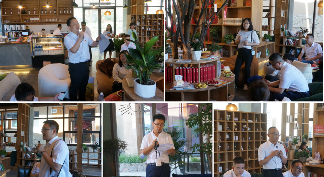 在棲云小鎮(zhèn)書吧開展的“一心永向黨,喜迎二十大”的交流研討會上,羅堯同志代表第五黨支部作主題發(fā)言。他首先對參加本次主題黨日活動的同志們表示歡迎和感謝,然后為大家深入講解并解讀了我省第十四次黨代會提出的“一核三帶”省域發(fā)展新藍圖和“四強”行動相關(guān)要點,并倡議每一位規(guī)劃工作從業(yè)者應(yīng)當加強政治學習,提高政治站位,在全面把握全省重大政治任務(wù)的前提下,與時俱進,緊密聯(lián)系實際開展規(guī)劃設(shè)計工作,并著眼長遠、聚焦重點,充分發(fā)揮技術(shù)優(yōu)勢,助力全面推進甘肅經(jīng)濟社會高質(zhì)量發(fā)展。黨委辦公室主任樊曉丹同志作了“高度重視黨建工作,推動黨建工作和業(yè)務(wù)工作深度融合”的主題發(fā)言。她首先肯定了第五黨支部一直以來在黨建工作中取得的成績,并鼓勵支部應(yīng)當百尺竿頭更進一步,積極打造黨建品牌,不斷提升基層黨建工作的引領(lǐng)力、號召力和吸引力。團委書記劉斌同志以《回顧百年團史,匯聚青春力量》為題,講授了一堂生動的黨課,帶領(lǐng)大家一起走進百年團史,追尋信仰之光,勇?lián)啻菏姑?,倡議廣大團員應(yīng)當緊跟黨走,擔時代之責,做新征程的奮進者、開拓者和奉獻者,傳遞青春力量,綻放青春芳華,用青春和熱血書寫新時代壯麗篇章。其他黨員及入黨積極分子也從自身學習和工作實際出發(fā),分別就基層黨建、政治理論學習、黨員先鋒模范作用發(fā)揮等方面交流了各自的所思所感。