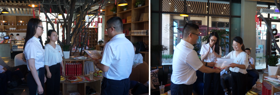 活動舉辦當天,恰逢黨員袁田同志和仲亞男同志的“政治生日”,為了讓黨員同志們切實感受到來自黨組織的溫暖與關(guān)懷,引導廣大黨員進一步強化身份意識、宗旨意識和責任意識,交流會現(xiàn)場還為兩位黨員同志舉辦了一場特別的“政治生日會”,為她們送上一張?zhí)刂频摹吧召R卡”、一枚新黨徽、一本新黨章,以極富儀式感的活動形式,提醒激勵黨員同志們要時刻謹記黨員職責,不忘初心、牢記使命,在工作和生活中時刻以黨員標準嚴格要求自己,切實發(fā)揮黨員干部的先鋒模范作用。