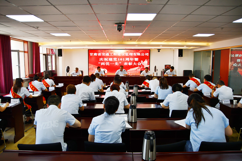 6月30日,甘肅省交通工程建設(shè)監(jiān)理有限責任公司召開慶祝建黨101周年暨“兩優(yōu)一先”表彰大會。交通監(jiān)理公司領(lǐng)導(dǎo)班子成員,機關(guān)及子公司全體黨員、中層干部,受表彰的先進集體和優(yōu)秀個人代表共計30余人在主會場參加表彰大會,各項目機構(gòu)在分會場參會。會議由交通監(jiān)理公司黨委副書記、總經(jīng)理丁峰主持。
