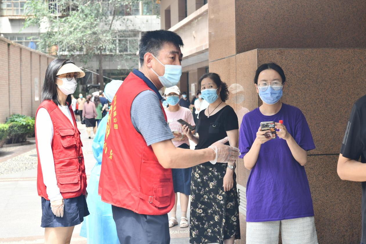 中午時分,志愿者們頂著38℃的高溫,穿梭在小區(qū)核酸檢測采集現(xiàn)場、小區(qū)出入口,按照核酸檢測要求,引導(dǎo)待測人員佩戴好口罩、保持安全距離、有序排隊。他們嗓子啞了也顧不上喝一口水,身上的衣服已不知被汗水浸濕了多少次,卻始終沒有一個人叫苦叫累,依然努力奮戰(zhàn)在核酸采樣第一線,用實際行動展示“奉獻、友愛、互助、進步”的志愿精神,詮釋國企擔(dān)當(dāng)。