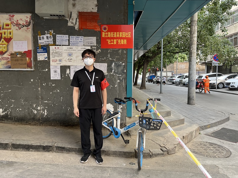 “你好,目前這里不允許人員進出,請問有什么事嗎?”這是志愿者權(quán)浩每天重復(fù)無數(shù)次的提問。本輪疫情發(fā)生以后,他就主動請纓,根據(jù)安排前往吳家園社區(qū)家具四場值守點進行卡點值守任務(wù)。他所負責(zé)值守的卡點情況復(fù)雜,封控區(qū)域內(nèi)居民、租戶、獨居老人較多,卡口附近有藥店、菜鋪,因此很多居民都想外出采購。每每遇到這樣的情況,他總是耐心地向居民解釋防疫政策并盡力提供幫助。權(quán)浩表示,疫情當(dāng)前,作為社區(qū)居民健康的守護者,深知自身工作的重要性和肩負的責(zé)任,面對各種困難,他都會積極協(xié)調(diào)、認真處理?!肮ぷ髦形覀兾⑿Χ嘁恍?、態(tài)度好一點,居民的理解和信任也就多一些。我會爭取讓群眾理解和配合我們的工作,我相信在大家的共同努力下,疫情終會退去。”簡單的話語中,透出的是他樂觀積極的心態(tài)和甘于奉獻的決心。