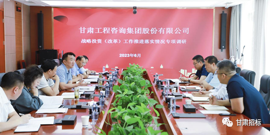 6月13日,甘肅工程咨詢集團黨委委員、副總經(jīng)理劉立昱,董事會秘書柳雷,戰(zhàn)略投資部(改革辦)部長馬靈會一行到招標(biāo)咨詢集團對戰(zhàn)略投資(改革)工作推進落實情況、董事會建設(shè)和運行情況開展專項調(diào)研。