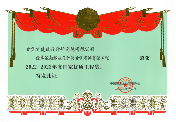 近日,從中國施工企業(yè)管理協(xié)會傳來好消息,由甘肅省工程勘察設(shè)計大師、省建筑設(shè)計院總建筑師馮志濤帶領(lǐng)團(tuán)隊設(shè)計的甘肅省體育館榮獲“2022-2023年度國家優(yōu)質(zhì)工程獎”榮譽(yù)稱號。