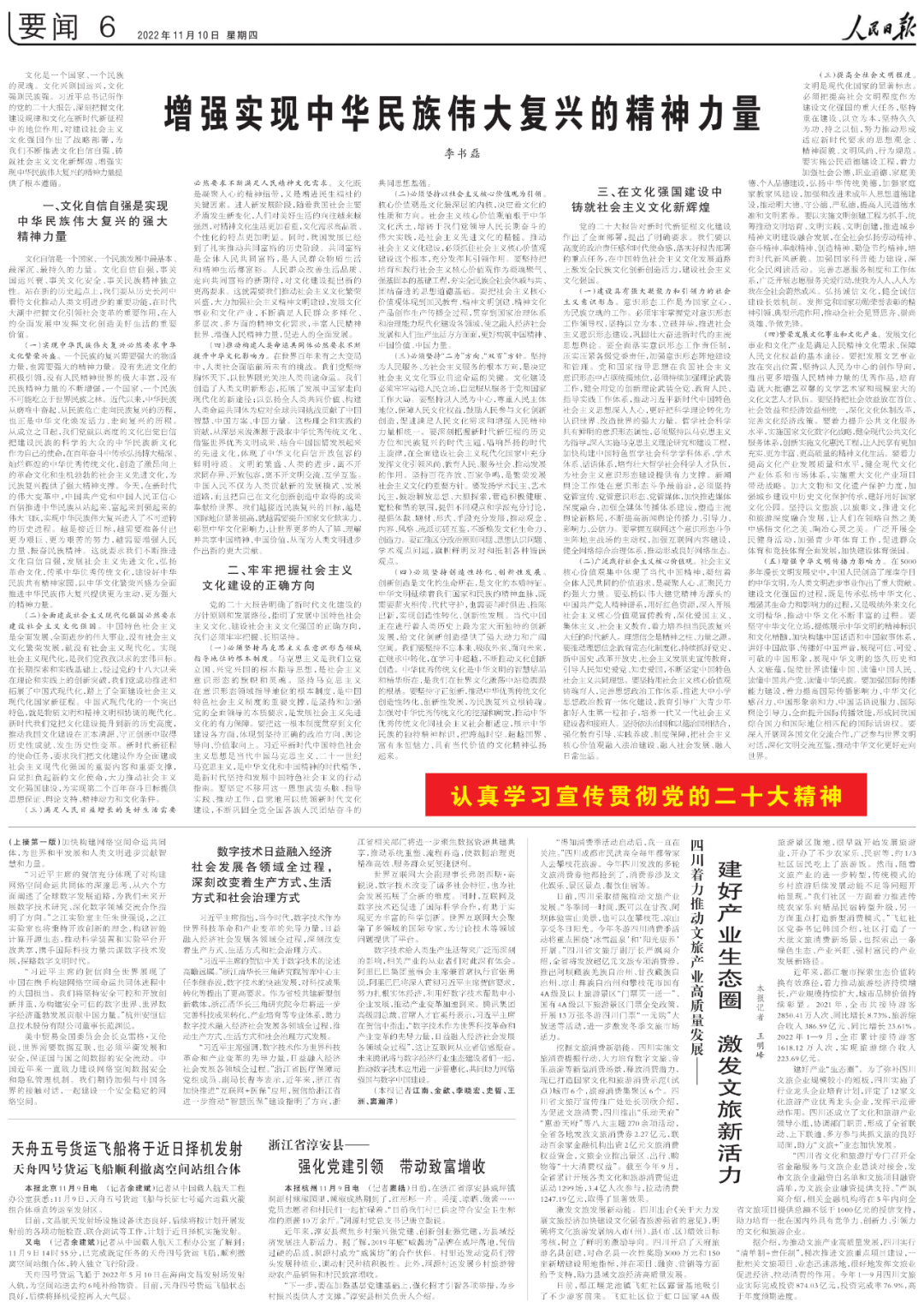 文化是一個(gè)國(guó)家、一個(gè)民族的靈魂。文化興則國(guó)運(yùn)興,文化強(qiáng)則民族強(qiáng)。習(xí)近平總書記所作的黨的二十大報(bào)告,深刻把握文化建設(shè)規(guī)律和文化在新時(shí)代新征程中的地位作用,對(duì)建設(shè)社會(huì)主義文化強(qiáng)國(guó)作出了戰(zhàn)略部署,為我們不斷推進(jìn)文化自信自強(qiáng)、鑄就社會(huì)主義文化新輝煌、增強(qiáng)實(shí)現(xiàn)中華民族偉大復(fù)興的精神力量提供了根本遵循。