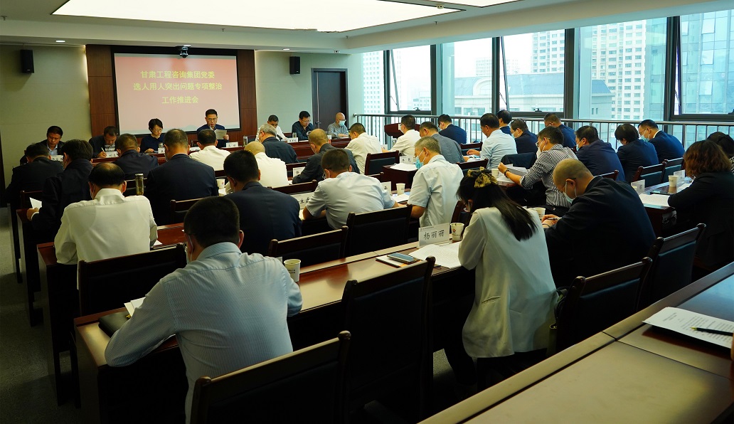 9月20日,甘肅工程咨詢(xún)集團(tuán)黨委召開(kāi)選人用人突出問(wèn)題專(zhuān)項(xiàng)整治工作推進(jìn)會(huì),傳達(dá)學(xué)習(xí)省屬企業(yè)選人用人突出問(wèn)題專(zhuān)項(xiàng)整治工作推進(jìn)會(huì)和《省屬?lài)?guó)有企業(yè)領(lǐng)導(dǎo)人員管理規(guī)定》有關(guān)配套文件精神,對(duì)選人用人專(zhuān)項(xiàng)整治工作再安排再部署再落實(shí)。黨委書(shū)記、董事長(zhǎng)馬明主持會(huì)議。